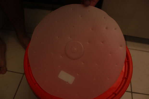 Para aquellos que nunca han usado un escurridor antes de, es un dispositivo que exprime el líquido de la ropa, puede ser cualquier cosa de dos pernos de balanceo, a dos rocas planas. Este doble escurridor la utilidad de cubos como lavadora y secadora, al igual que el ciclo de centrifugado en una lavadora eléctrica. Después de esto que creo sobre el uso de una tapa más rígida que el más barato que pude encontrar, o incluso lujo y cortar un círculo de madera o metal, pero esto se hace y soy demasiado perezoso para mejorarla.