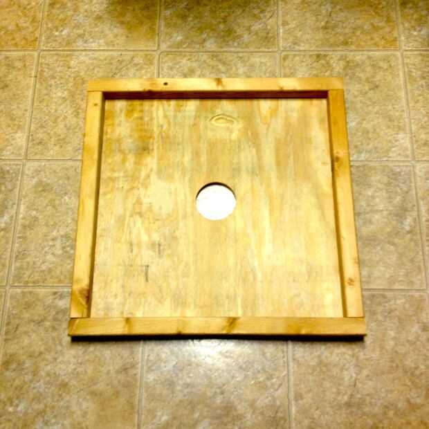 Vamos a construir el marco. En primer lugar, alinee el marco juntas al ras con las placas de superficie de 2'x 2'. Atornille un tornillo de 3" en los extremos de los tableros de marco (uno en cada esquina). Esto asegurará el marco juntos y está listo para ser unido a la superficie.