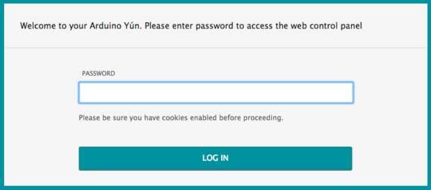 - Introduzca "arduino" para la contraseña y haga clic en el botón LOG IN.