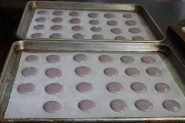 Deje que los macarons sentarse durante unos 30 minutos o hasta que forme una corteza dura.