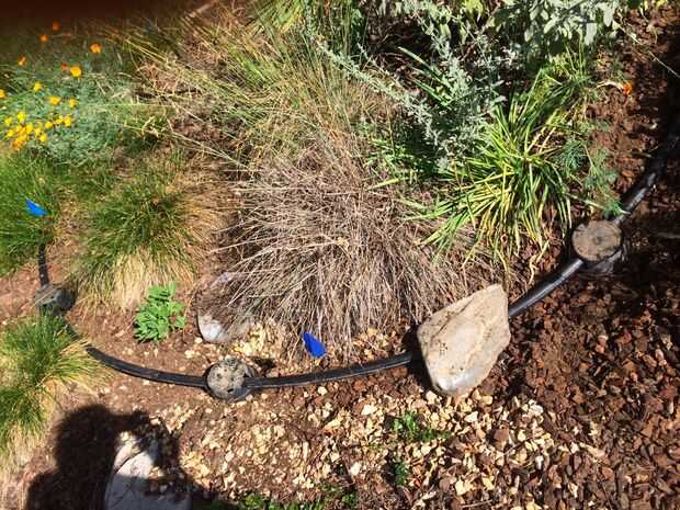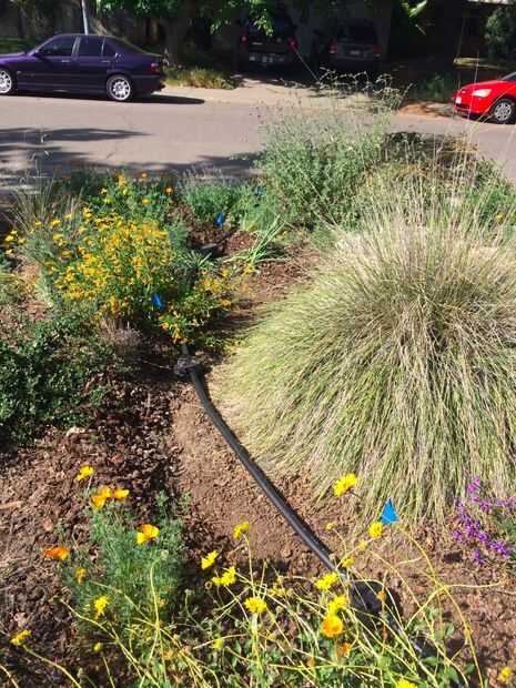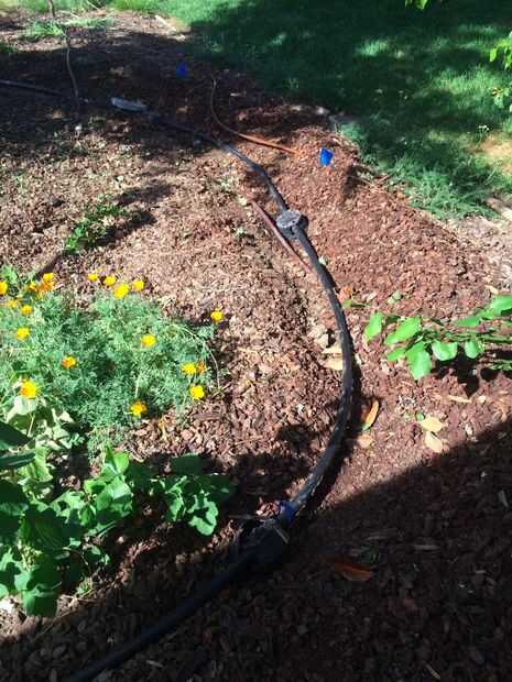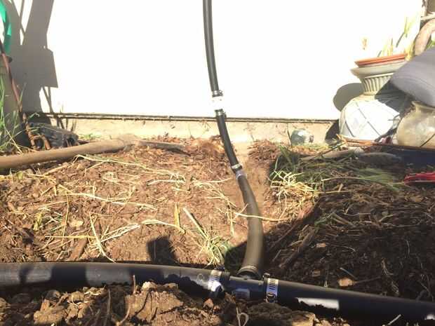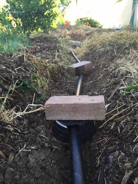 Con zanja para regar. En gran medida mantillo yardas, a veces puede enterrar la tubería en el mantillo y saltar zanjas. Usted puede jugar su línea, pero no ir por la borda. No tee más de una vez o dos veces. Funcionamientos más pequeños de los tubos, especialmente con las lavadoras de ultra alta eficiencia será más exitosas. Utilice cosas pesadas para lastrar el tubo hasta relleno.