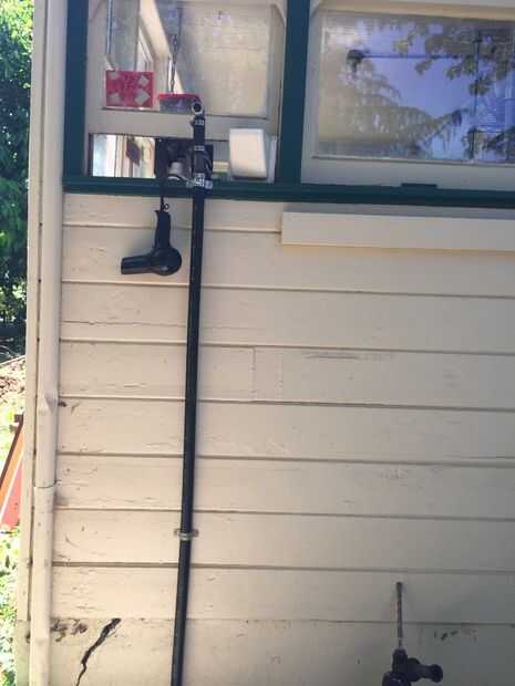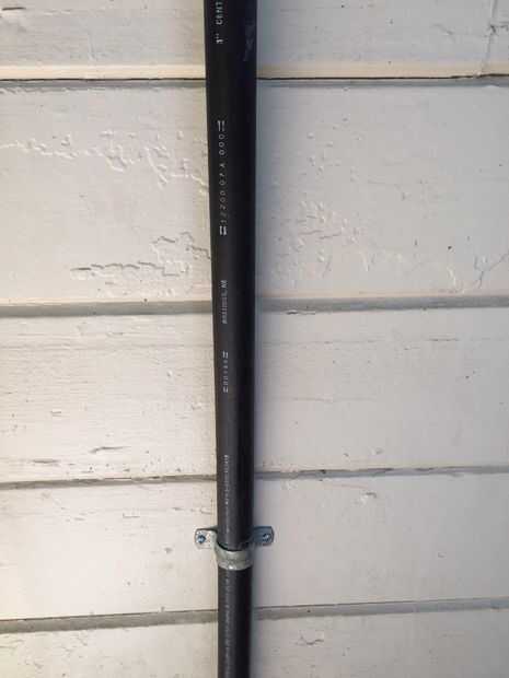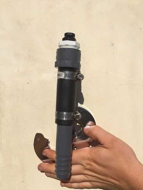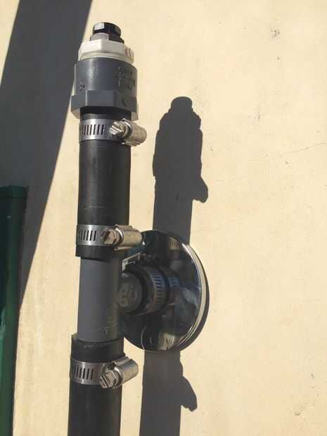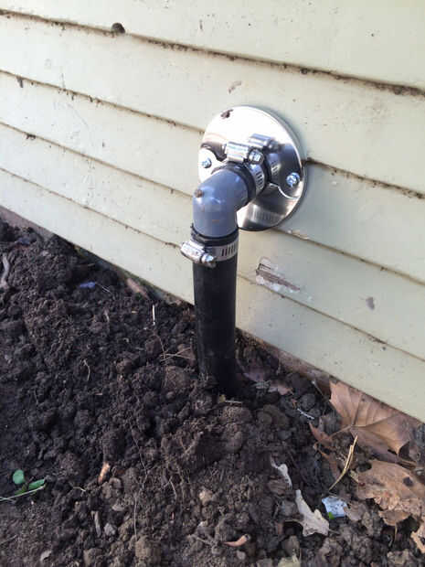 Hacer un agujero ligeramente más grande que el diámetro de la tubería e inserte el tubo. En la pared exterior, sellar la penetración con masilla. Me gusta usar un collar de tubos como adorno. Estas son en las ferreterías cerca de la sección del grifo.