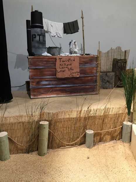 Esta ropa no es difícil construir construí esto para un juego llamado del Pacífico Sur. Lo único que podría ser tuff es tener todos los accesorios como hojas de impacto metal taladro de madera y otros, pero que sería fácil para estas cosas en línea. Ves donde la escritura negra en ese Consejo acaba de obtener una plaza de madera y escribir pintura negra allí y pintar lo que puse en la mía. Es cuerda mordazmente alrededor del bambú y que un nudo para poner la ropa encima de las cuerdas para que cuelgue a partir de ahí que se parecen más a una lavandería.