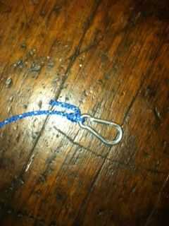 Primero necesita hacer un agujero en la boca de tu sesión de lavado lo suficientemente grande para el tornillo en el tornillo de ojo pequeño y atornille el tornillo de ojo. Luego atar el enlace de primavera a un extremo de la polycord. En el otro extremo del lazo polycord de la arandela grande. El enlace de primavera se recortará este tornillo de ojo cuando la lavandería tolva ropa Scoot no está en uso con el resorte enlace acortado al tornillo de ojo en la boca de la tolva y el otro extremo de la polycord con la arandela grande unida se cuelga hacia fuera el extremo de la manga.