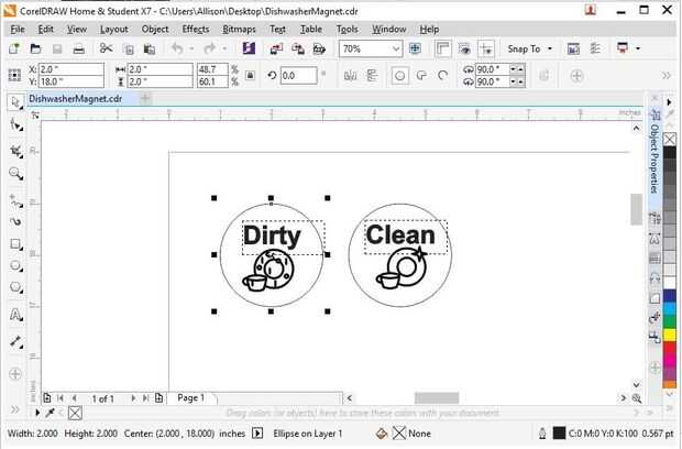 Opté por grabar las palabras "Limpio" y "Sucio" en ambos lados y utiliza algunos iconos lindos por Maxim David.