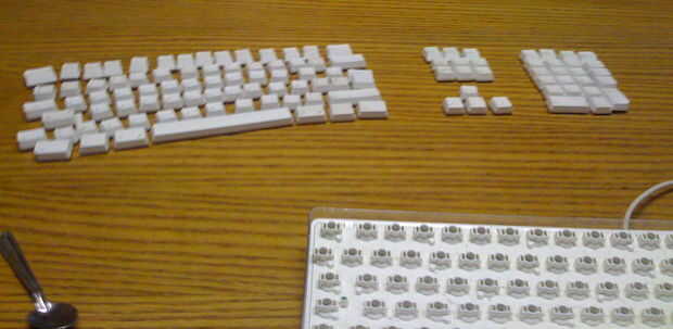 con una suciedad incrustada blanco plástico teclado de Apple y una lata de aire no puede hacer justicia? Mi respuesta fue "¡ oh sí."  Mi teclado estaba tan cachonda que las teclas se atascó y no fue placentero escribir ya. Determiné que limpieza