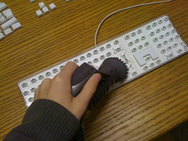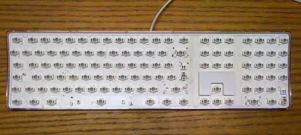 con una suciedad incrustada blanco plástico teclado de Apple y una lata de aire no puede hacer justicia? Mi respuesta fue "¡ oh sí." Mi teclado estaba tan cachonda que las teclas se atascó y no fue placentero escribir ya. Determiné que limpieza