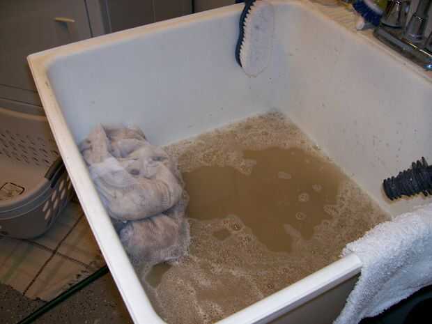 Después de vaciar la bañera, con cuidado (y digo suavemente) Presione hacia abajo las bolsas para algunas del restantes agua jabonosa hacia fuera.