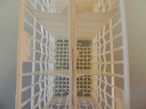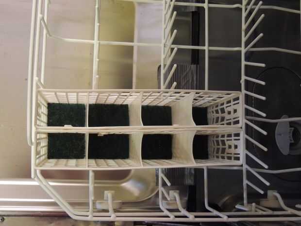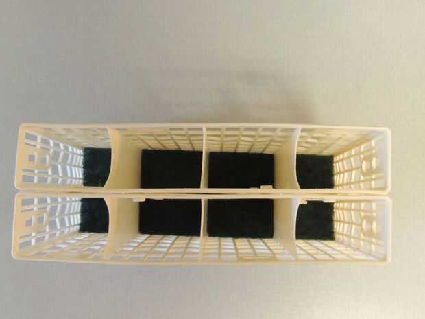 Tenemos un lavavajillas de tamaño apartamento que tiene una canasta de utensilios que no es robusto y fácilmente se los agujeros en la parte inferior así que tenemos que cargar puntos de cuchillo hasta protegerlo. Ya que esta pauta no fue siempre seguida, nuestra cesta actual es perforado y tenemos que cargar en un cuchillo de manera todavía muy específico señala encima para no dañarlo más, pero también tenemos que poner artículos con grandes fondos como cuchillos para carne en primera para tapar los agujeros. Estamos en nuestra cesta de reemplazo 2 º, por lo menos y no para un muy de largo plazo encontrar una fuente para una nueva canasta. Aunque recientemente hemos encontrado una fuente de la cesta ha sido pedido por casi 2 meses. Por lo tanto, mi marido propuso la siguiente solución temporal. (También puede ser una buena manera de proteger la nueva canasta antes de se daña!)