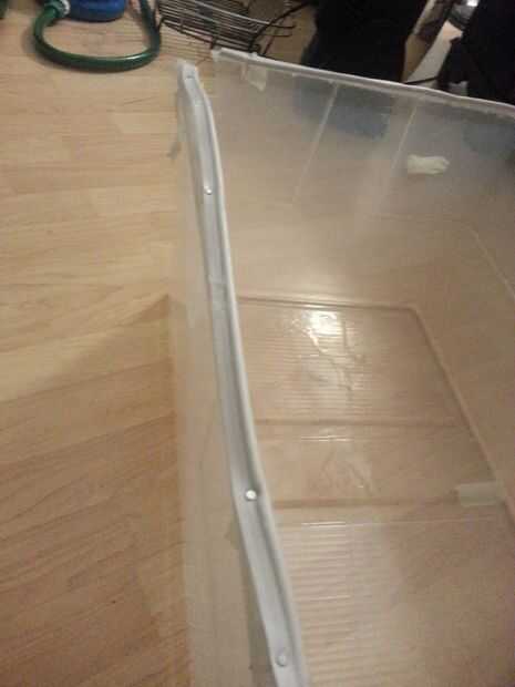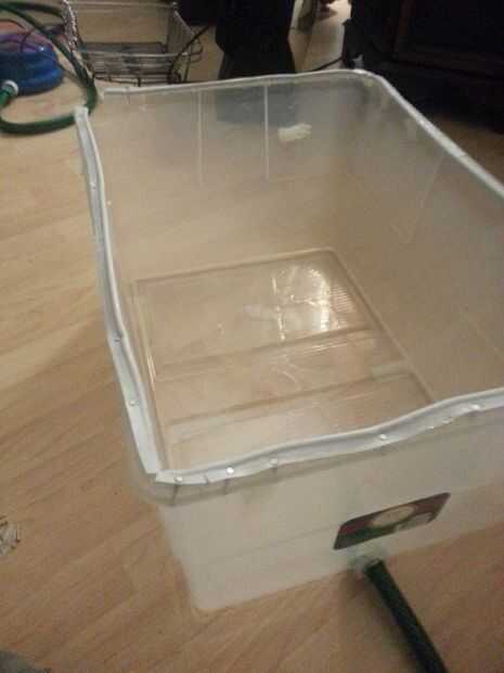 Traté de muchas maneras diferentes para sellar la tapa y ahora estoy en uno que es más eficaz, acuario Junta en una empaquetadura que es aprovechada en su lugar con un martillo de clavos de alambre incluido. Ignorar la manguera de desagüe, estaba todavía bajo la impresión de que era una buena idea de cuando tomé esta foto.