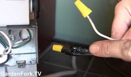 Coloque las tuercas del alambre en los cables expuestos y Enrolle cinta aislante alrededor del alambre caliente (negro) para evitar que se salga. Habrá agua en la fuente y las líneas de drenaje, asegúrese de tener un tazón de fuente práctico.