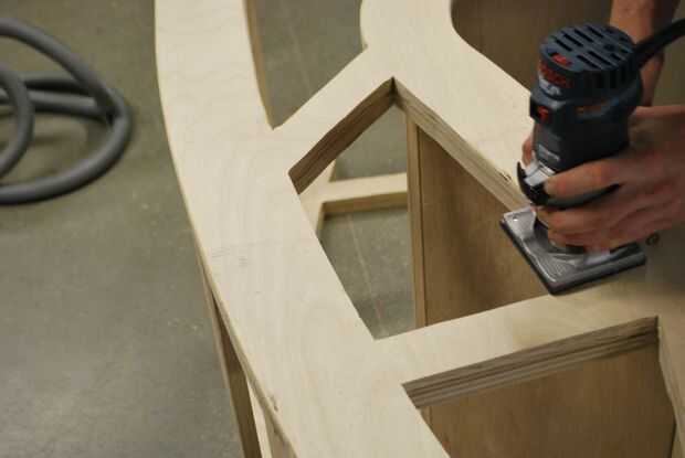 Utiliza un router con un poco de radius para redondear los bordes en la silla. Este es un paso importante por dos razones. En primer lugar la madera se mira mejor y sentirse mejor con bordes redondeados. En segundo lugar, los bordes redondeados son menos propensos a dañarse. Después de redondear todos los bordes puede golpear la silla entera con unos grados de papel de lija. Depende de usted cuánto tiempo desea pasar en esto. Terminé de lijar con 120 arena y papel de grano 220 arena.