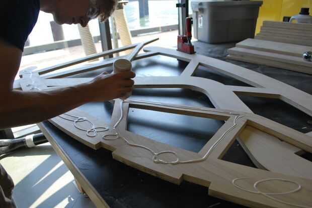 Las piezas cortadas en el último paso se convertirá en el interior de perfiles de apoyo para el Presidente y los que no recorte son los perfiles exteriores. Aplique cola en una de las piezas internas lo pone encima de la pieza exterior que alinean en los bordes. Repetir este proceso con el otro conjunto. Es importante que las pilas son imágenes de espejo uno del otro para que el interior de las partes se enfrentan en.