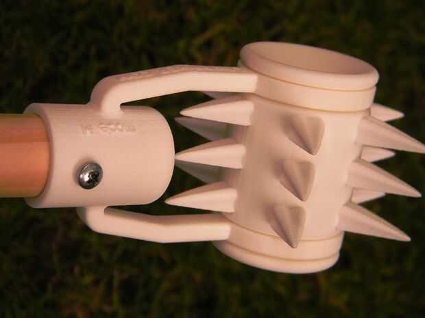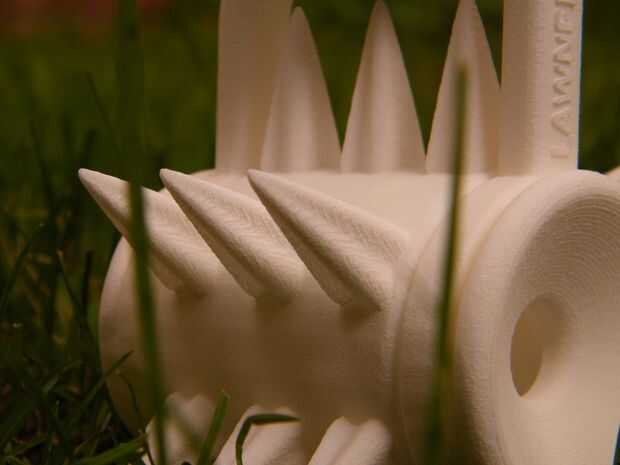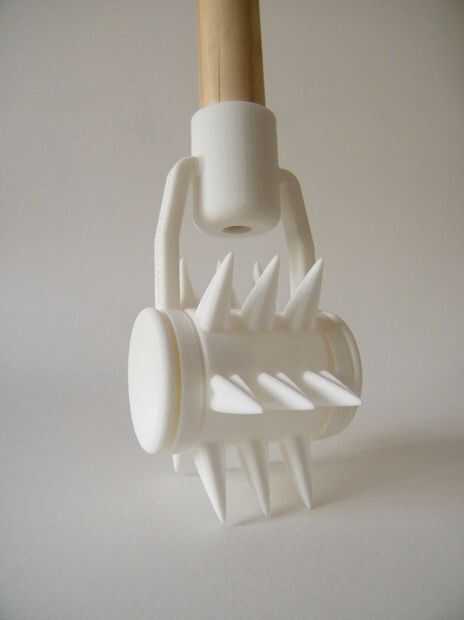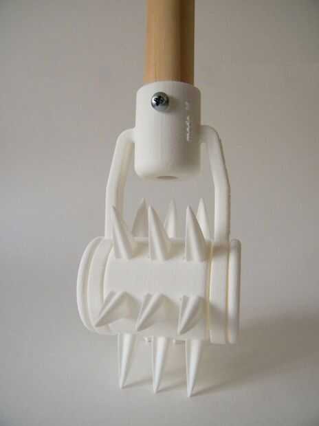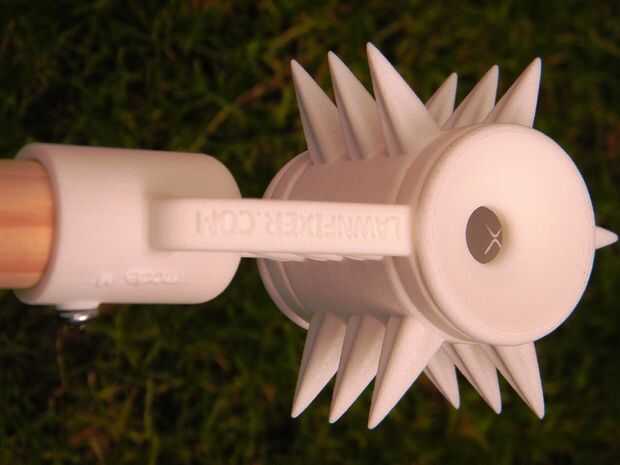 Una herramienta de jardín 3D impreso, montado sobre un palo de escoba, reparación parches muertos en su césped.