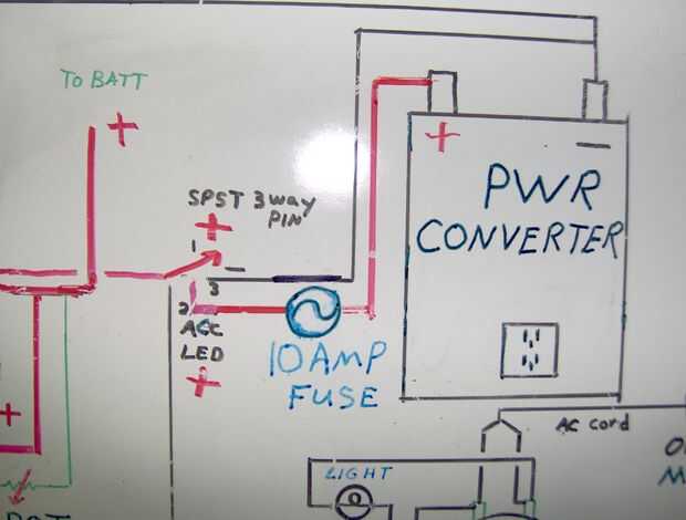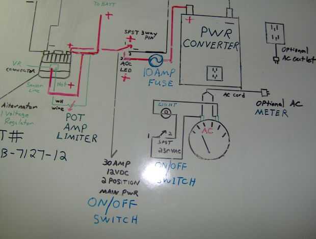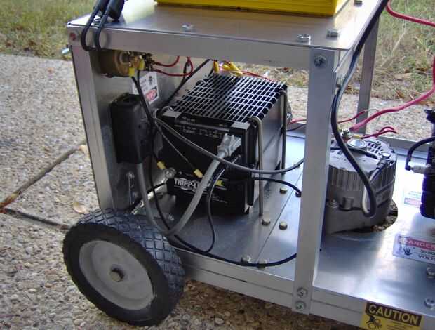 Hay algunas piezas opcionales, no necesarias realizar esta pequeña joya de poder. La cortadora de pasto neumáticos, caja, batería del vehículo, mango, medidor de voltaje, salida de 120VAC, luz y encendido/apagado de luz. He decidido ir todos hacia fuera con éste mediante la adición de todos los extras, sólo me tomó más tiempo a hacer 3 meses exactamente. Un diagrama esquemático muestra cómo conectar todo. La toma de corriente que puedes ver en el panel es tapping desde el convertidor de potencia que ya cuenta con salidas de corriente alterna. Sólo quería hacer una extensión de la misma por lo que no alcanzo por detrás para enchufar cosas...