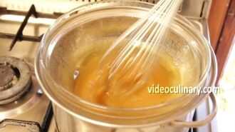 Separar 3 huevos. Derretir 500 gramos (18 onzas) de miel en un recipiente sobre agua hirviendo. Retire del fuego y añadir 125 gramos (4,5 onzas) de mantequilla y remover hasta que derrita y combinado.