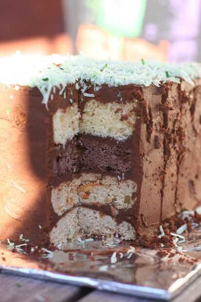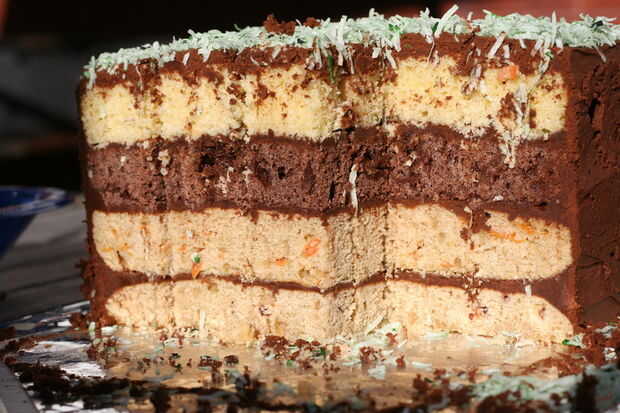 Asegúrese de que hay un poco de teatro para el corte como desee los interiores a ser una sorpresa. ¿Encontré mi pastel a ser bastante densa que ha añadido a "Minecrafty-ness" de la torta... tener que cavar para llegar a las cosas buenas... conseguirlo? Debido a la espesura y altura de la torta podría cortar trozos muy pequeños y cada uno tenía todavía un servicio suficiente (era capaz de conseguir 25 piezas de este pastel de 7 "x 7"). ¡ Es como 4 pasteles en uno!