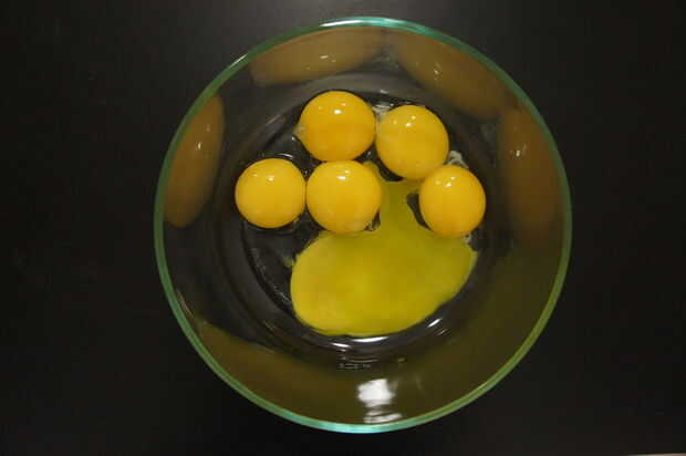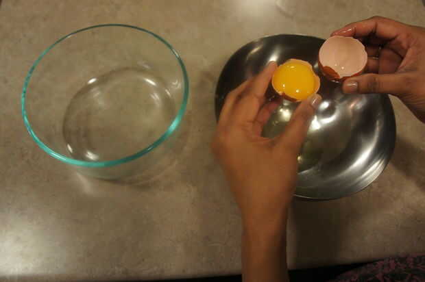 1) separe las yemas de huevo y las claras de huevo en dos cuencos diferentes. (Huevos deben estar a temperatura ambiente)