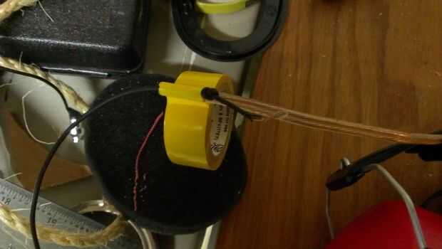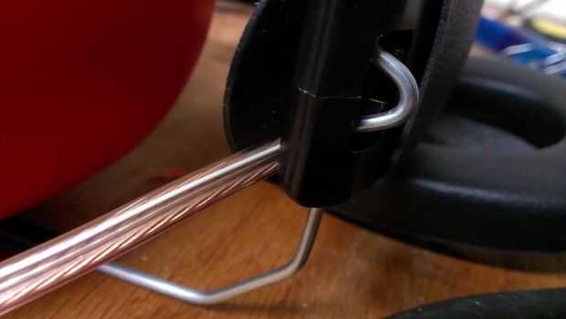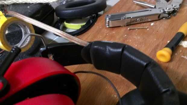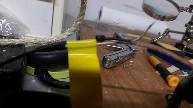 4. con cinta aislante, conecte auriculares cable a cable justo por debajo del nudo.