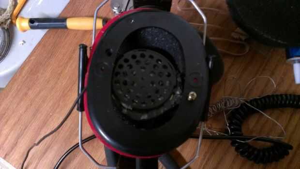 3. línea de plástico aro exterior con orejeras y agujeros de montaje de altavoz en la orejera, atornille en su lugar.