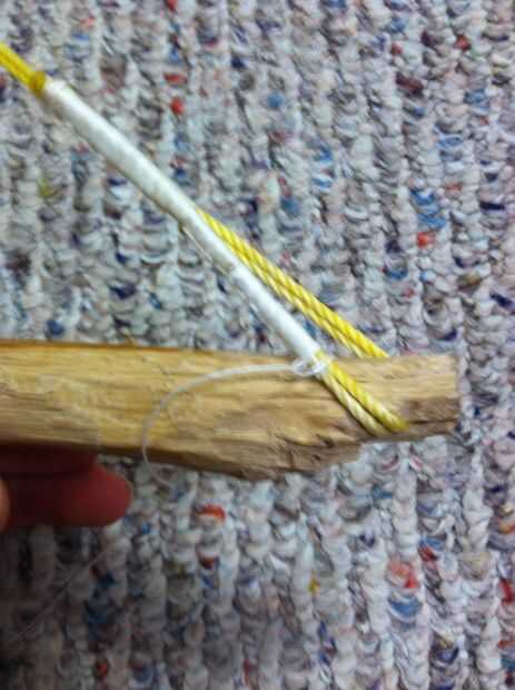 Use el marcador para marcar donde empiezas a roscar el lazo de cuerda casera hasta que termines. Y use el encendedor para quemar extremos pequeños.