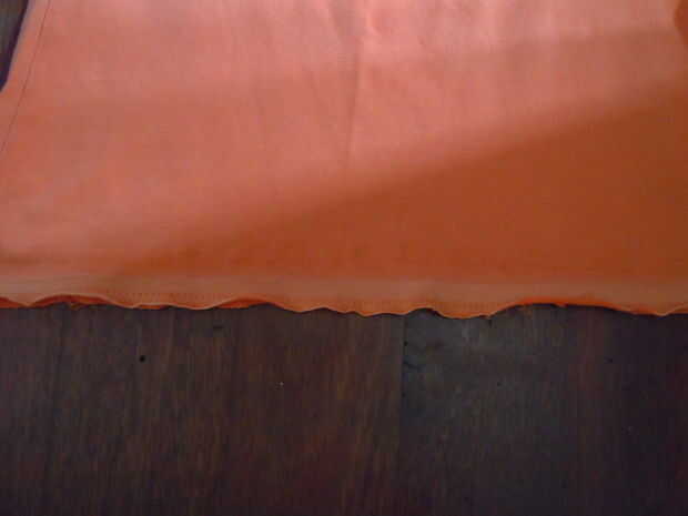 primero cortadas las mangas y en el escote. Doble aproximadamente una pulgada y coser. O bien cortar las mangas o el dobladillo inferior para hacer una tira lo suficientemente larga para pasar por los tubos. Cortar el dobladillo. Alimentación a travé