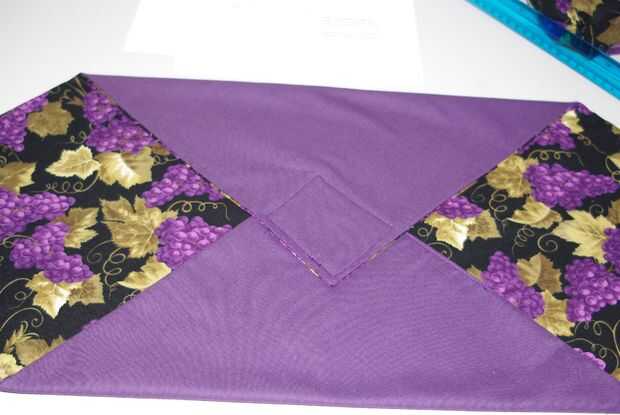 Una vez hecho eso, simplemente plegar las esquinas restantes como Ensobrado y coser cada lado como en las fotografías, deteniéndose al llegar al final de la tela de contraste.