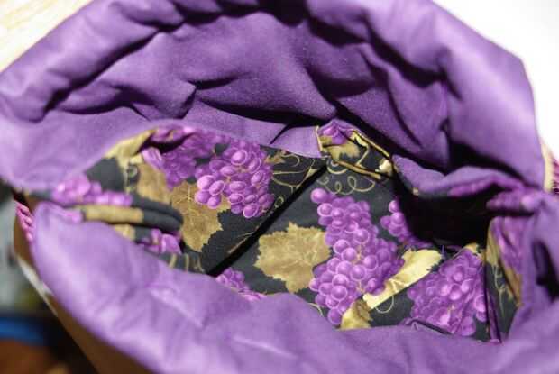 Las esquinas flojas serán plegadas y cosidas en todo para permitir que las manijas de su elección. Con este estilo que es libres de utilizar asas bolso plástico que se pueden comprar en varios arte y tela tiendas. Puede utilizar a tela adicional o ajuste para correas de diferentes tamaños. Opté por usar cuerda torcida adorno para un efecto de simple lazo.