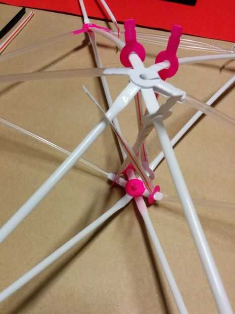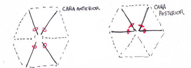 las Naciones Unidas extremo con strawbee de un extremo y el otro extremo del sorbete con strawbees de 2 extremos Deben insertarse cruzando el eje central y en la cara anterior y posterior segun como indica el esquema: 2 en los ejes transversales superiores y 2 en los ejes horizontales para la cara posterior. Los se conectaron en el eje horizontal se conectaran en los transversales inferiores de la cara anterior y los se conectaron en el transversal superior Irán tambien en los transversales superiores
