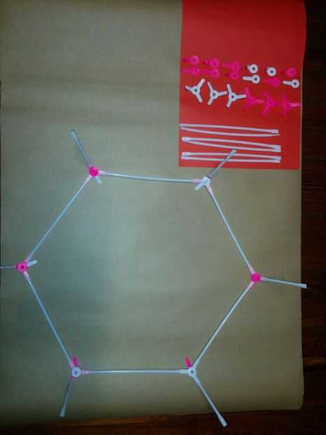 Paso 4: Paso 4 armado del segundo hexágono mayor y agregado de los sorbetes conectores inter hexágono