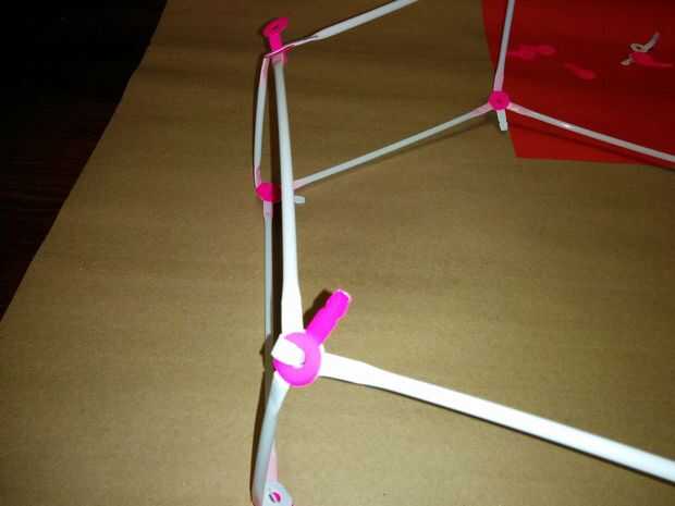 Paso 6: Paso 6 detalle del enganche especial entre los strawbees de la base hexagonal alcalde para poder acoplar el hexágono menor