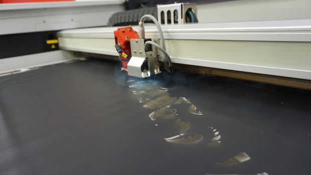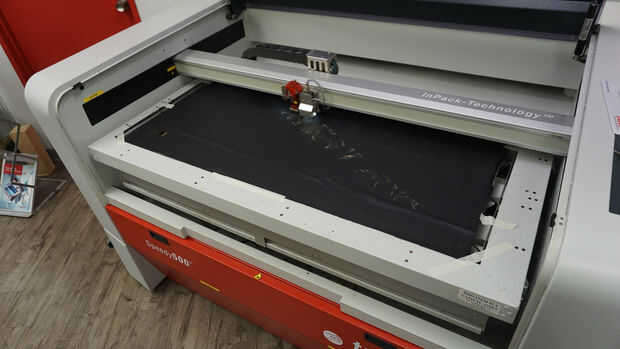 Aplicar el material para la cama del láser y la cinta por los bordes, como la superficie tal vez desigual, llevando a misshapes en el diseño. Utilizamos un láser de 80w de Trotec Speedy 500 CO2 porque si la cama de gran tamaño para adaptarse a un estándar 50" amarre diagonal. Se utilizaron 100 velocidad y potencia 28 1000ppi para el grabado y 2 velocidades y 20 1000 hz de potencia para el corte.