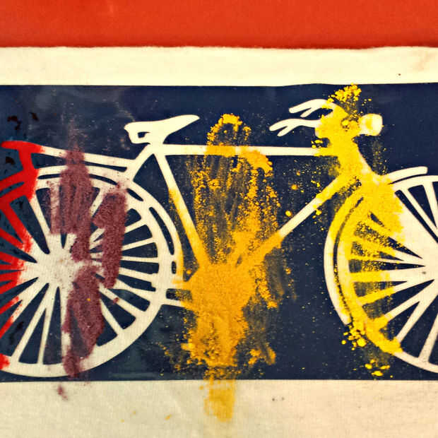 Opté por usar pintura en polvo que me dan más control sobre los resultados y para intensificar los colores. Pintura acuosa sangrará por debajo de la plantilla, haciendo un diseño más borroso.