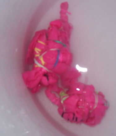 Usando la tela de algodón PFD (Dharma Trading es una buena fuente para ello), vinculo teñir la tela con un tinte de color de rosa caliente, pasando por los mismos pasos como lo hice para el vestido.
