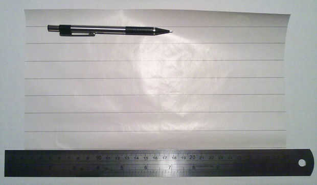 Papel cortado a 7 1/2 "x 4,5". Medir y trazar líneas para 9, 1/2" ancho tiras que son 7 1/2 pulgadas de largo.