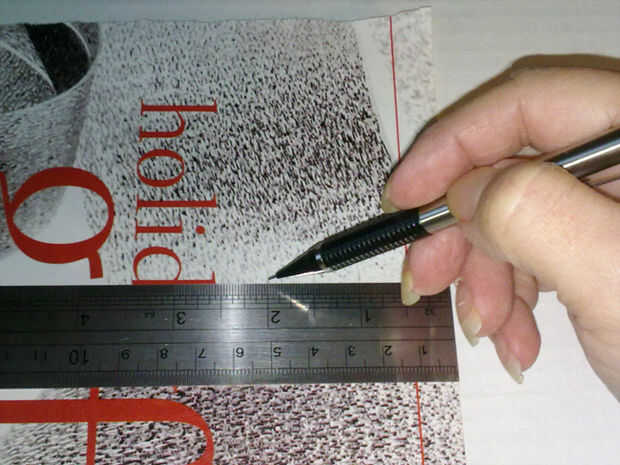 Cortar papel de 11 "x 6 3/4". Medir y trazar líneas para 9, 3/4" ancho tiras que son 11 pulgadas de largo.
