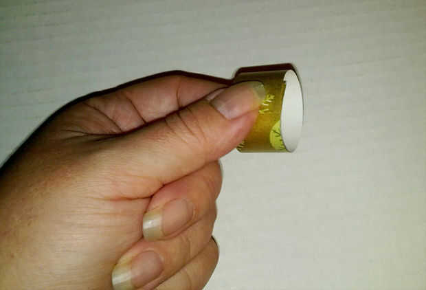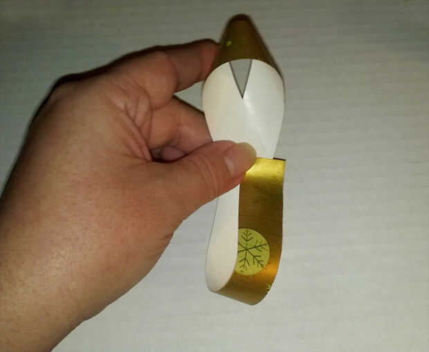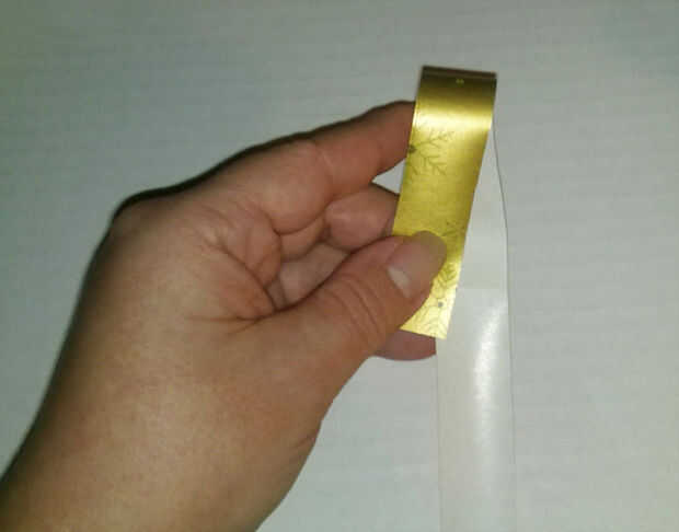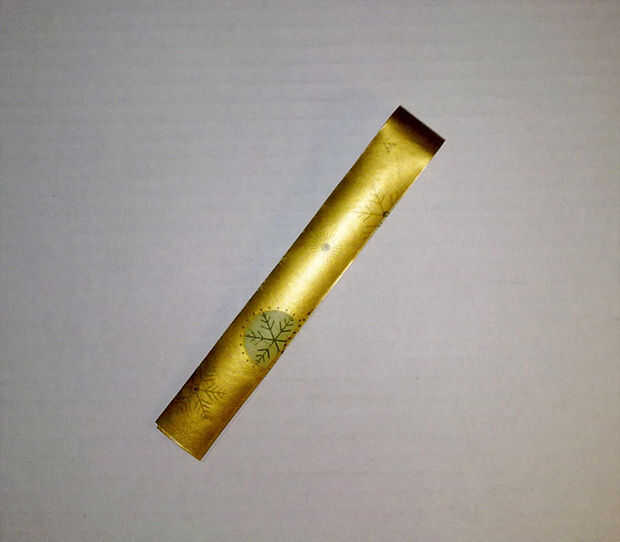 La tira más corta, simplemente creará un bucle con el lado impreso hacia afuera (como se muestra en la foto).