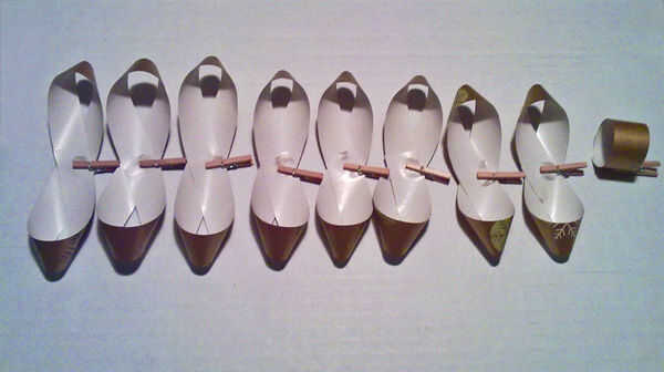 Fijar pieza a un lado para secar y repita el mismo proceso para todas las tiras (excepto la tira más corta).