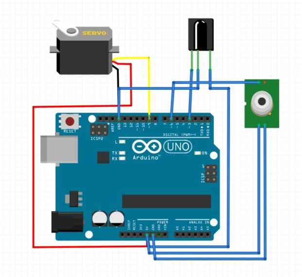 Bueno, eso es todo! Ahora todos tenemos que hacer es subir el código, que es bastante sencillo, lee el sensor de infrarrojos, y cuando lee un buttonpress a actualizar el estado del servo, que se vuelve a encender la luz o apagar. También he añadido un LED para indicar la presión del botón que el LED parpadea la cantidad de veces indicado por el botón de modo botón 5 permite el parpadeo del LED 5 veces. También he añadido el sensor de movimiento PIR al sentido si alguien está entrando en la habitación. Y último pero no menos importante he añadido la funcionalidad en tiempo, así que de ahora en adelante, si pasa el tiempo 5:00 de la mañana el servo se actualizará y se encenderá la luz.