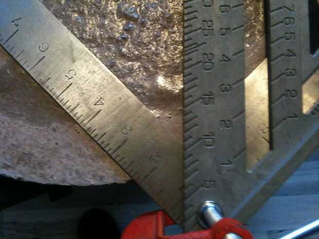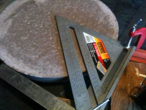 Coloque el encuadre escuadra contra el borde de la piedra y dibujar una línea, gire el borde y dibujar una línea de intersección. donde se encuentran debe ser su centro.