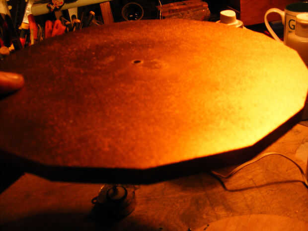 tengo un rincón de mi cocina donde guardo asorted artículos que quiero mantener aseado y fácilmente evaluables. Un Lazy Susan parecía la solución más simple, pero quería ser fuerte para no tener que anclar a la barra. Tenía un viejo giradiscos de CD
