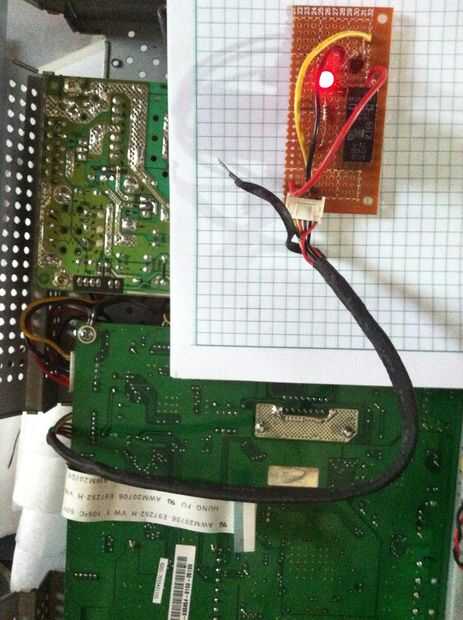 Conecte el interruptor de relé Vin con el conector de 3 voltios, la energía de 12V y tierra. Encienda el TV y ver si el relé se activará. He quitado el conector del inversor defectuoso y soldadas a la placa de relé.
