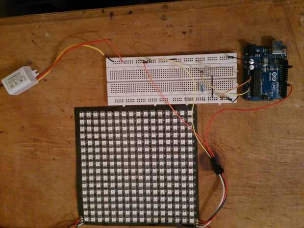 La configuración es como se muestra en la foto. Usted puede aprender cómo conectar la matriz neopixel aquí la placa de arduino.