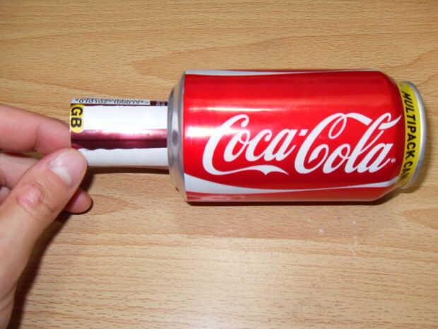 Con unas tijeras o las tijeras muy fuerte, puede reducir la longitud de la segunda. Quitar la parte superior e inferior que lo deje con un rollo de aluminio. Sobrehilar para arriba con sus tijeras o las tijeras.