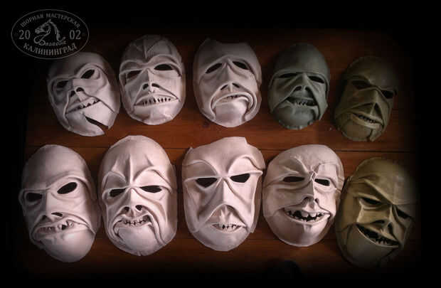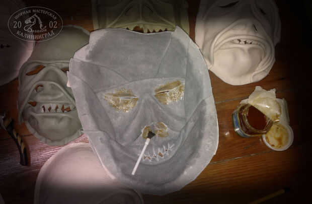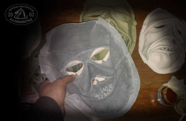 La curva de exceso de piel de la nariz y los ojos, pegar bien y ampliar los agujeros a un tamaño adecuado ahora máscaras están listas para pintura :)))