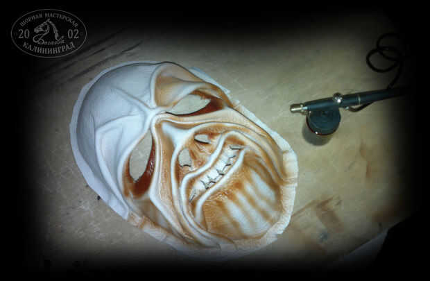 Para la pintura utilizo aerógrafo. Para rociar alcohol en nariz de la máscara se puede utilizar uno más barato ya que tengo.
