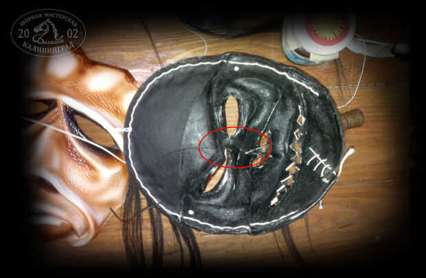 Para no obtener vertical deformación de máscara de dentro coser con la nariz y la frente de hilo.