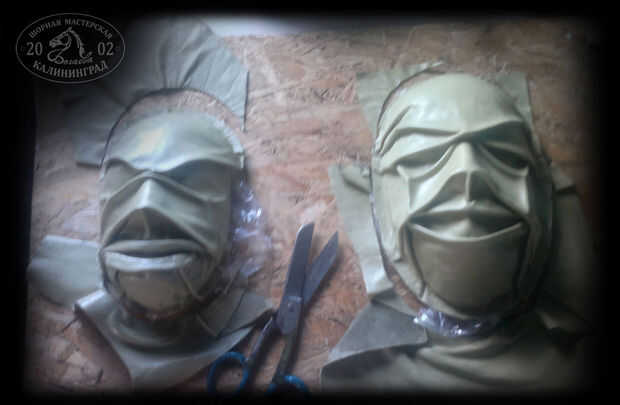Después de que quite las grapas y despegar la máscara un poco cruda de la forma y cortar los residuos hacia fuera