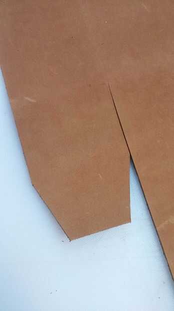 Coloque el patrón sobre la piel y marcar las piezas a cortar. Use un punzón para empujar los agujeros en el patrón donde estarán las ranuras. Para el frente, utilizarás todo el diseño. Para la parte posterior podrá usar todo el ancho y hasta 13.5" desde la parte inferior. Para el divisor (si decide poner en), utilizar todo el ancho del patrón y 11,25" desde la parte inferior. Referencia a las imágenes para más detalles.
