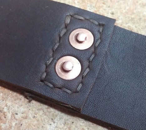 Coser juntos las dos correas, marqué primero donde el contacto del cemento (barcaza de cemento de la marca... es el mejor) iría. Entonces lija la superficie de la carne no antes de aplicar el cemento a ambas superficies de encolado. Esperar un poco para que el cemento se seque, luego pegan las piezas. Utilice el lado de tu mazo de goma y un martillo las piezas donde solo cementado.